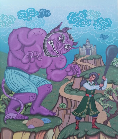 – Сине коткарырга килдем, – дип кенә өлгергән, шул арада, күк күкрәп, яшен яшьнәп, коточкыч зур дию килеп баскан. Аның янында Камыр батыр малай кебек кенә күренә, ди. Дию аңа: