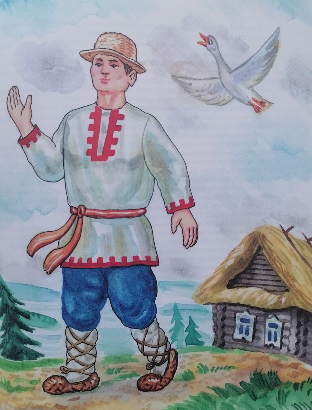 Ул арада каз очып бара икән. Иончыкны ишетүгә ул әби белән бабай янына очкан.
